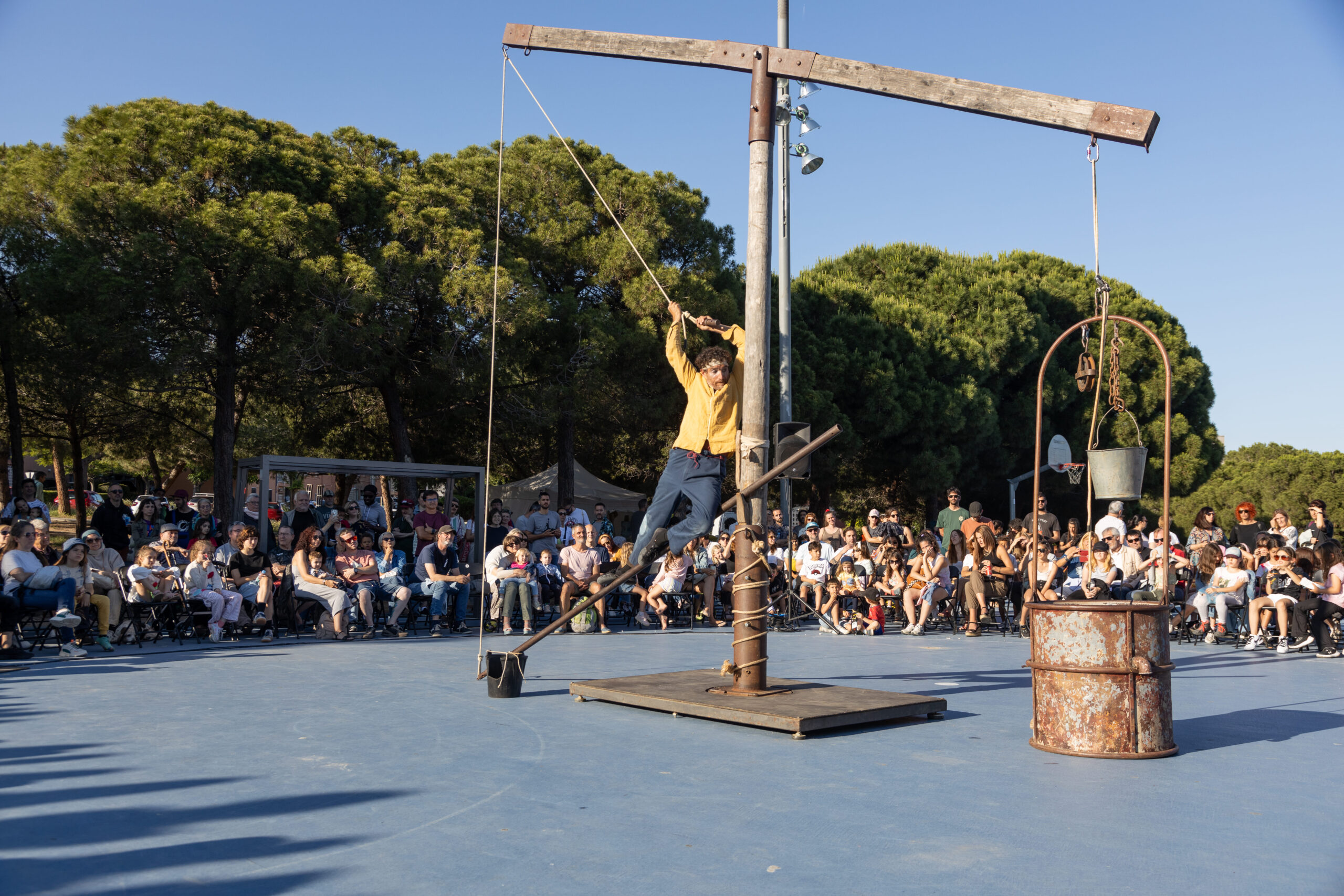 Mira’T, un jeu de regards croisés. De lui vers lui-même, à la fois introspectif et ouvert à l’autre.<br>De toi vers lui et de lui vers toi. Se regarder, se confronter à sa propre solitude, prendre la décision d’entreprendre ce voyage personnel et le transcrire sur la piste.<br>Mira’T, Une invitation à se regarder sans complaisance ni orgueil, avec humour et une douce auto-ironie.<br>Dans une recherche constante d’équilibre, tout oscille, tout tourne, tout danse.<br>Mira’T se veut une invitation à réfléchir sur la fragile condition de l’être humain, une proposition pour réfléchir à l’équilibre illusoire de la vie où chacun de nous, à tout moment, peut se retrouver dans une situation limite.<br>Sur la piste, un homme et une grande balance.<br>En jouant avec les poids et contrepoids, il entreprend un voyage à la recherche constante des limites de l’équilibre.<br>Ce voyage est aussi bien physique qu’intérieur.<br>C’est se regarder, mais aussi s’exposer au regard des autres.<br>Regarder sa propre solitude et la transcender en l’exposant au centre de la piste.